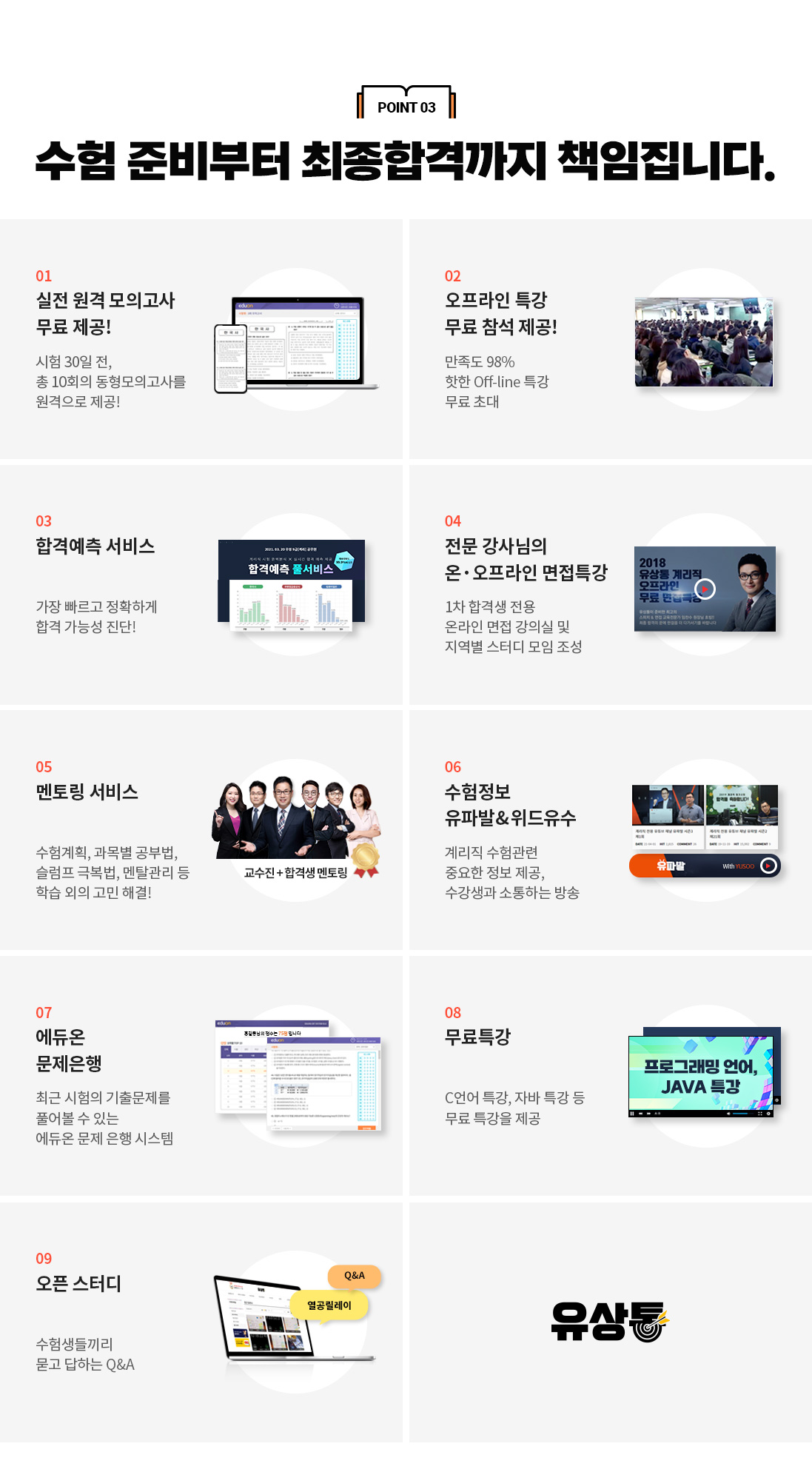 계리직 기초입문서+강의 무료 배포 1위 내역 확인하기 학습가이드 영상보기 유상통 카페 바로가기 GO 기초서 선착순 무료로 받기 GO 한국사 - 왕 업적 총정리 우편/금융 상식 - 용어&제도 정리 한국사 김종우 교수님 홈 우편/금융 상식 고민석 교수님 홈 한국사 우편/금융 상식 계리직 기초입문서+강의 무료 배포 학습가이드 영상보기 유상통 카페 바로가기 GO 기초서 선착순 무료로 받기 GO 공무원 지금 시작해야하는 이유 01 다음 시험이 확실히 있다! 우정사업본부에서 이례적으로 다음 시험에 대한 과목변경과 실시 안내를 하였습니다. 02 과목수 증가, 고난이도 출제경향 기조 유지 예상으로 단기합격이 어렵다! 시험 공고 전까지 무조건 컴퓨터일반과 한국 유상통과 함계 해야하는 이유! point01 계리직 공무원 시험 4회 연속 합격자수 1위 3번째 시험 도전 직장인이 합격하는법 우편/금융상식 고득점 우/금 BEST 학습법 2019 계리직 합격자 설문조사 2019 오프라인면접 특강 0개의 합격수기 보러가기 point02 최다 합격자를 배출한 믿고 보는 전문 교수진이 쉽고 명쾌하고 재미까지 보장하는 강의로 합격까지 이끌어드립니다. 샘플강의 보러가기 point03 수험 준비부터 최종합격까지 책임집니다. 보다 빠르게,강의, 교재 학습고민 등 궁금증 100% 해결! 상담게시판 계리직 합격은 유상통입니다.