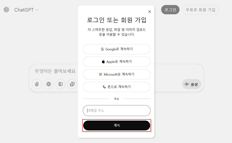 - 03해당 서비스를 사용하기 위해서는 chatgpt 사이트의 회원가입과 로그인이 필요합니다.