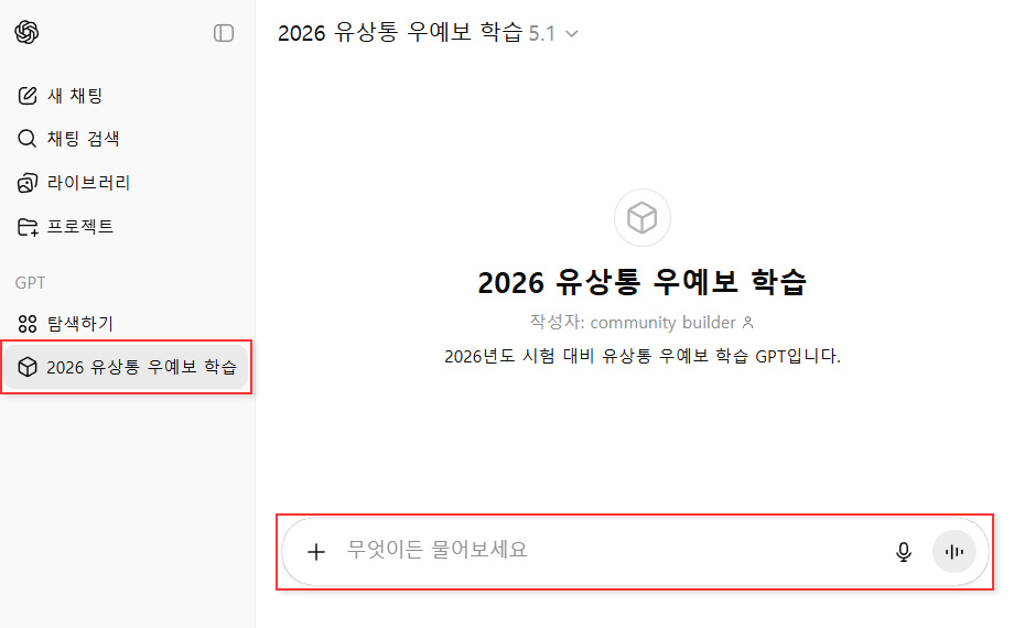 2026 우정사업본부에서 발표한 우예보 학습자료(정오사항 반영)를 업로드하여 ChatGPT에 인식