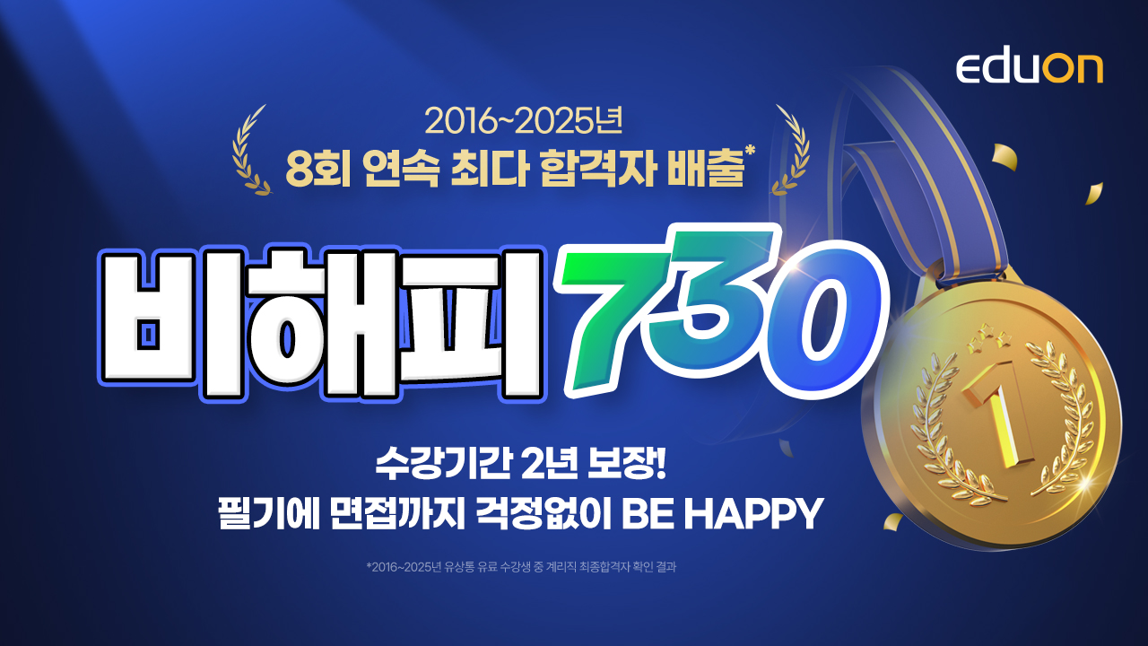 수험번호 입력은 유상통 사이트 > 수험생 공지사항을 통해 별도 안내될 예정입니다. - 비해피730 수강 기간 중 본인 아이디로 공유 또는 양도가 확인된 경우 – 1차, 2차 경고 후 3차 적발 시 이용중인 강좌는 수강 중지될 수 있으며, 관련법에 의해 민•형사상 배상 책임을 질 수 있습니다.