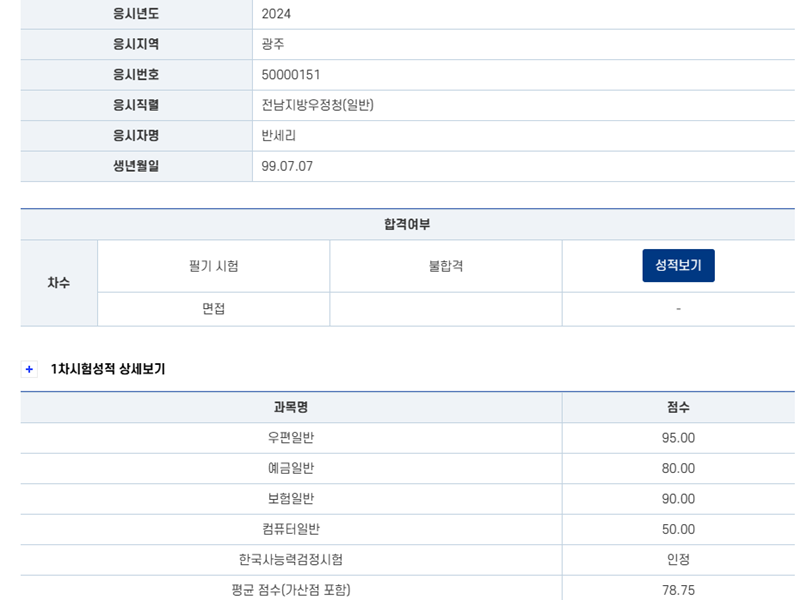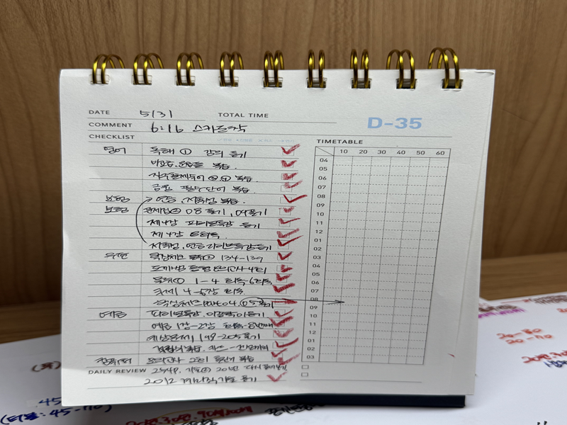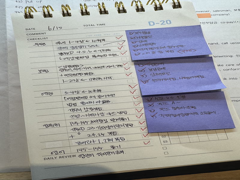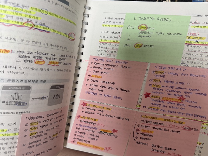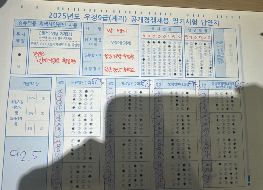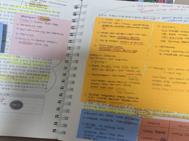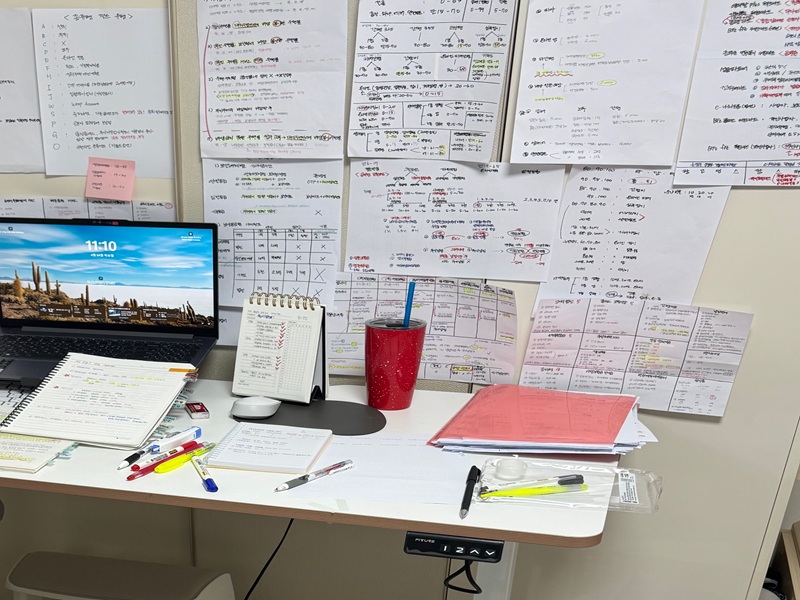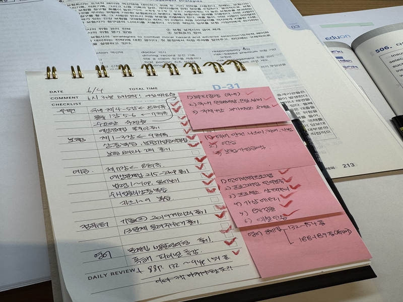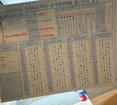 2024 3월~7월 : 한국사자격증 따기 + 첫 시험 (우편,예금,보험 각 5회독) --- 불합격 ![]() 2025년 1월~7월 : 포기할까 했던 시험 5개월 쉬다가 6개월 준비하고 다시 도전 ( 우편 85, 보험 80, 예금 95, 컴영45) 76.25 --- 필기합격 우편 16회독 /예금 15회독 / 보험 15회독 문제집들은 3번이상은 다시 풀어봄! 2. 저는 작년엔 타사 수강생이었고 강의가 맞지 않아 강의를 두고 혼자 공부했었어요. 그렇게 첫시험 필기불합격을보고 .. 재도전을 준비하였을땐 운이 좋게도 유상통을 알게되었고, 이 글을 쓰는 순간까지도 유상통선생님들께 감사해요.. 제가 필기합격을 할 수 있었던 가장 큰 이유는 유상통 선택한거 80프로라고 할 수 있을거같아요. 3. 공부 방법 첫번째 , 보험 + 예금+우편 공통적으로 암기가 필요한 부분은 벽면에 붙이고 매일 테스트를 했어요. 매일 숙제로 해서요! 암기가 필요한건 시험 직전에 해라는 말도 있지만 저는 시험 100일정도 남았을때부턴 매일 보고 매일 암기테스트 했어요. 시험 때 당황하면 급하게 외운건 안떠오를거같더라구요. 이렇게 매일하다보면 그냥 샤샤샥 써져요 ![]() ![]() 두번째, 가장 이해가 어려웠던 예금 우편은 통째로 외워야해서 간략하게 정리하기보다는 통으로 외우는게 좋다고 생각하지만 예금은 내가 이해하기 좋게 간략하게 정리하면서 외우는게 더 좋을 거 같다고 느껴서 필요한 부분들은 포스트잇을 붙여서 정리했어요. 이렇게 하니까 오래걸렸던 예금 회독 시간이 확연히 줄었습니다. 그리고 저처럼 예금에 대해 하나도 모른다면 고민석쌤 강의를 추천! 이종학쌤강의는 예금을 어느정도 알고 있는 재수생분들이나 예금관련 공부를 해보신분들이 듣기에 좋은 거 같아요. ![]() ![]() ![]() 세번째, 우편 우편은 국내 , 물류, 국제를 구분하여 공부했어요. 특히 국내와 국제는 헷갈리는 부분이 많기 때문에 공통점과 차이점을 빨리 파악하여 보면 국내와 국제가 헷갈리지 않아요. 물류는 양이 적기 때문에 시험이 가까워졌을때는 국내 회독하면서 + 물류 절반 국제 회독하면서 + 물류 절반 이렇게 물류는 조금씩 같이 해줬습니다! 물류는 양이 적은거에 비해 문제 출제 되었던 양이 많았기 때문에 점수를 얻기에 좋은 방법이라고 생각했어요. 비록 2025년엔 물류 비중이 적었지만 2026년엔 또 많이 나온다면 점수 얻기엔 물류는 꼭 포기하지 않기를 !!!! 물류는 도끼쌤 강의를 추천하고 국내와 국제는 고민석쌤 강의를 추천합니다. 저는 꼼꼼하게 전부 봐야 마음이 편하기도 하고, 시험출제위원이 어디서 문제를 낼 지는 정말 모르기에 빠짐없이 모든 것을 설명해주시는 고민석쌤 강의가 너무 좋았어요 물류를 도끼쌤 추천하는 이유는 , 물류는 국내와 국제에 비해 이해로는 쉽게 받아들이기에 어려운 부분 같다고 느껴졌는데 도끼쌤이 물류파트에 사진을 많이 보여주셔서 이해가 쏙쏙 되었습니다 강추! 네번째 , 보험 상품부분은 매일매일 보았어요. 그리고 공통특징을 잡아 상품을 외워주면 정말 상품은 너무 쉬운데? 가 되는 거 같아요. 공통 특징을 묶었다면 나만의 암기법으로 외워서 쉽게 기억하기! 예를 들어, 고액할인 상품이 든든한종신,하나,와이드,통합,온라인정기니까 '종신'이랑 '하나'가 '온라인'에서 '와이드' '통' 바지를 샀다 . 50%해약환급금 상품은 든든한종신,하나,와이드,new100세,치매간병 이니까 '종신'이랑 '하나'가 '치매'에 걸렸나?! '와이드'바지를 '100'벌이나 샀대! 공익형은 나르미,청소년꿈,엄마,만원 이니까 '엄마'가 '나르미' '청소년' 됬다고 용돈 '만원' 줬다 플러스보험기간 있는건 와이드,통합,당뇨,실속정기,암케어2종이니까 와(이드)~~~통(합) 닭(당뇨)이~~ 실(속정기)~~하네 암(케어2종)컷인가? 이런 식으로 하면 진짜 쉽게 외워졌던거같아요!! 다섯번째, 컴영 컴퓨터는 유수쌤 강의를 정말 하나도 빠짐없이 따라만 간다면 어렵지 않아요. 이번시험은 ^^ 시험이 이상한 탓이지 유수쌤을 단 0.0000000001%도 원망하지 않습니다. 제가 컴퓨터가 이렇게 재밌는 수업일 수 있을까 싶었던 컴퓨터 일타강사님이신거같아요. 그냥 믿고 따라 가시길!!! 그리고 조금씩 꾸준히 하시기를 ..! 우예보가 중요하다고 컴퓨터를 소홀히 하기보다는 우예보에 비중을 크게하고 컴퓨터는 꾸준히 조금씩하여 익숙하게 만드는게 좋은거같아요. 개념 암기보다는 개념이 어느정도 잡혔다면 기출문제 무한반복 추천! 영어는 너무 너무 너무 못해서 2~3개만 맞자는 심정으로 조금씩 계리직 관련부분만 했는데 정말 3개 맞았다.... 저처럼 영어를 못한다면 영어 문법부터해서 정말 꼼꼼히 하시는걸 추천.. 이번처럼 컴퓨터가 너무 어렵게 나온다면 영어를 잘하는사람이 붙는다고 해도 과언이 아닐거같습니다. 우예보는 다 너무 잘하니까 컴영으로 승부를 봐야한다! 4. 학습플래너를 꼭꼭꼭!! 쓰기 저는 전날에 다음날 해야할 공부를 미리 적는데, 그러면 다음날 공부를 바로 시작할 수가 있어 좋았어요. 플래너에 해야할 일을 적는걸 추천하는 이유는 다 끝냈을 때의 뿌듯함 + 목표가 있기에 집중을 더 해서 끝내게 되는 거 같아요. 정말 사용 전 후 공부 집중도가 다름을 느낍니다!! ![]() ![]() ![]() ![]() 5. 몸관리.. 수면 충분히! 밥 