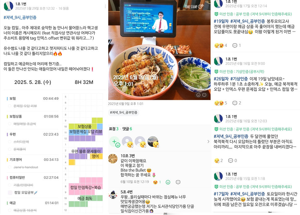 아침엔 산책 겸 둘레길 한 시간 → 독서실 가서 오전 4시간, 오후 4시간 집중 → 점심 후 30분 낮잠. 루틴은 단순하게, 꾸준히! 이 패턴을 시험 전날까지 지켰습니다. “10시간 공부했다!” 이런 건 못했지만, 순공 8시간 루틴은 꼭 지키려고 했습니다. 억지로 많이 하는 것보다, 같은 리듬을 유지하는 게 제 비법이었습니다.