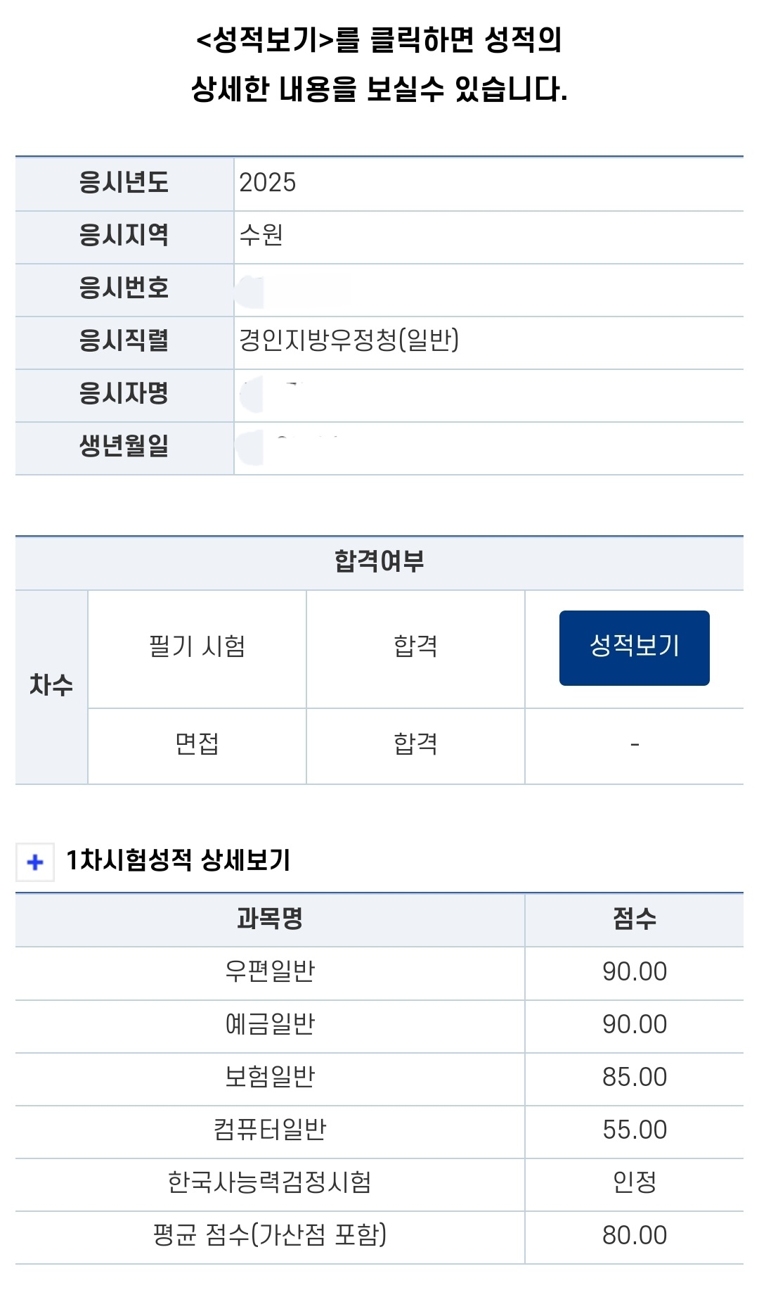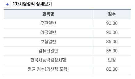 우편 문제는 초시 때 익혔던 덕분에 어려움 없이 풀었고, 예금과 보험에서 모르는 문제는 선뜻 넘기며 시간을 효율적으로 썼습니다. 컴퓨터 과목은 유수쌤의 강의를 통해 기초부터 다시 다져서 열심히 공부했기에 과락을 면할 수 있었습니다. 아는 문제만 풀자라는 생각으로 컴일을 풀었던 것 같아요. 영어는.. 베이스가 있었기에 열심히 하지 않았는데 그 결과 4문제밖에 맞추지 못했습니다 ㅠㅠ