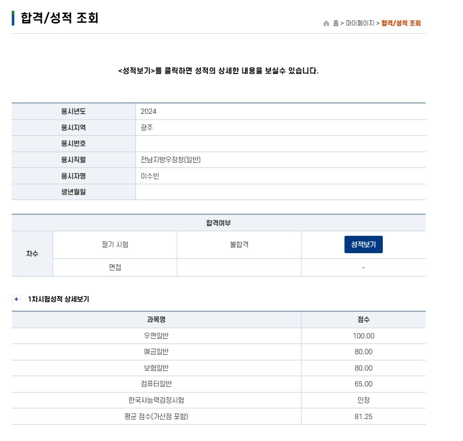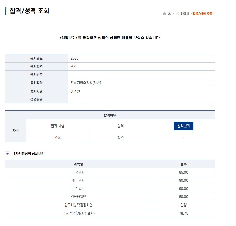 2025년 시험 다행히 전남청에서 안정적인 점수가 나와서, 안도와 기쁨의 눈물을 흘렸습니다.