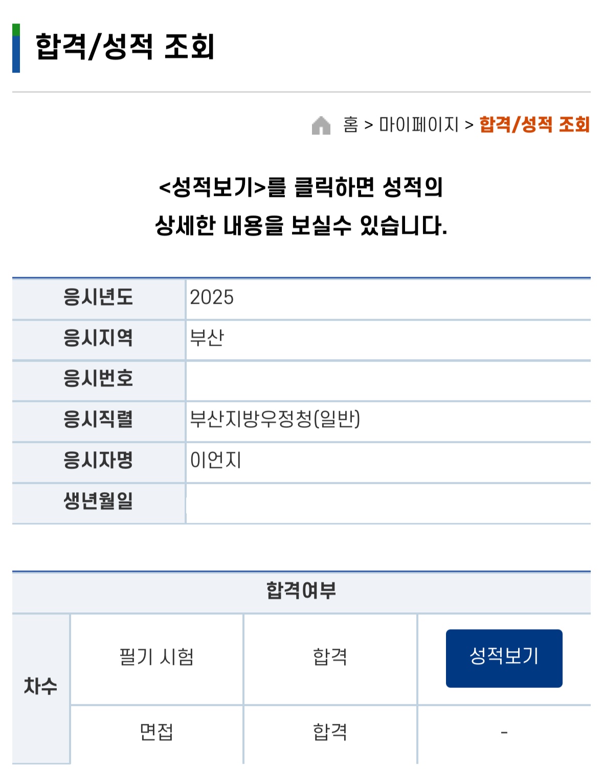 안녕하세요.![]() 부산청 재시생입니다. 필기에 이어 최종 합격수기도 쓸 수 있어 또 다시 기쁩니다 ^_^