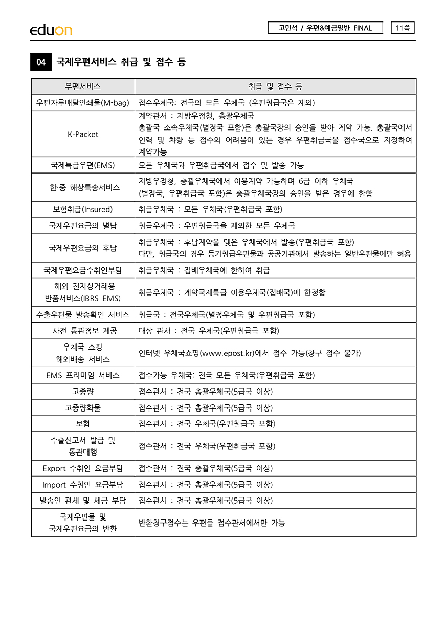 계리직 시험에 최적화된 우편일반 커리큘럼
