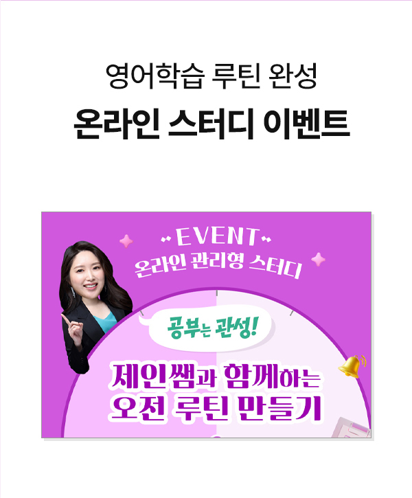 암기식 영어가 아닌 이해를 바탕으로 한 수업이고, 제인쌤 커리 열심히 따라 가시다 보면 어느새 영어공부가 재밌어지는 스스로를 발견하실 수 있으실 거예요!!!! -