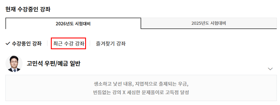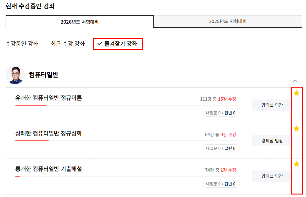 - 내강의실 > 최근 수강 강좌, 즐겨찾기 강좌는 어떻게 이용하면 되나요?