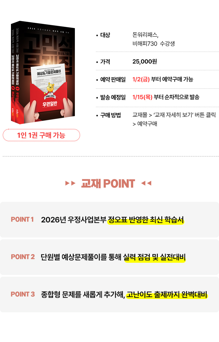 2026 우편/예금 일반 고민석 예상&기출문제풀이 교재 예약판매 안내