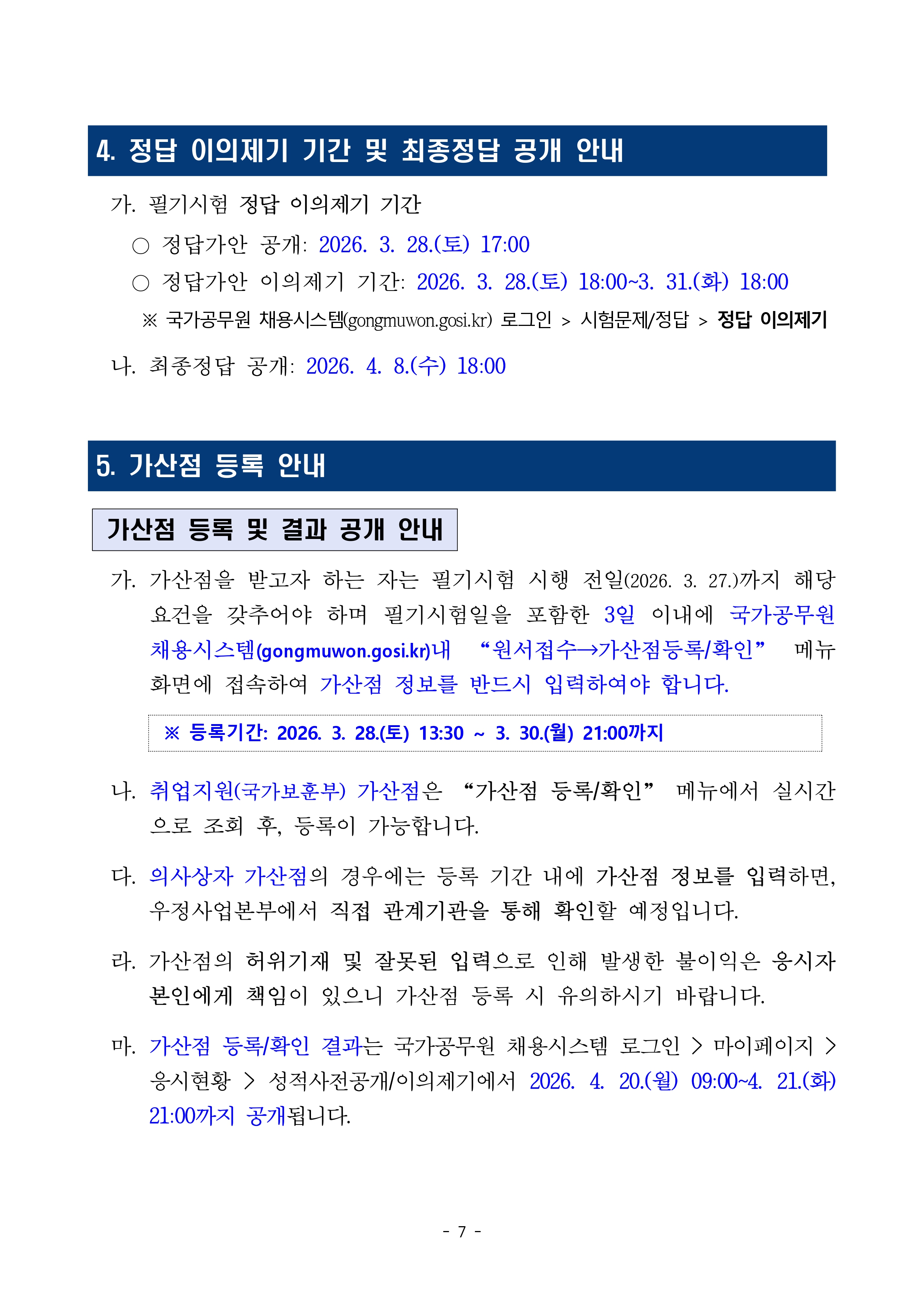 2026.3.28(토) 10:00 ~ 11:20 (80분) 입실시간 : 08:00 ~ 09:20 정답 이의제기 기간 및 최종정답 공개 안내