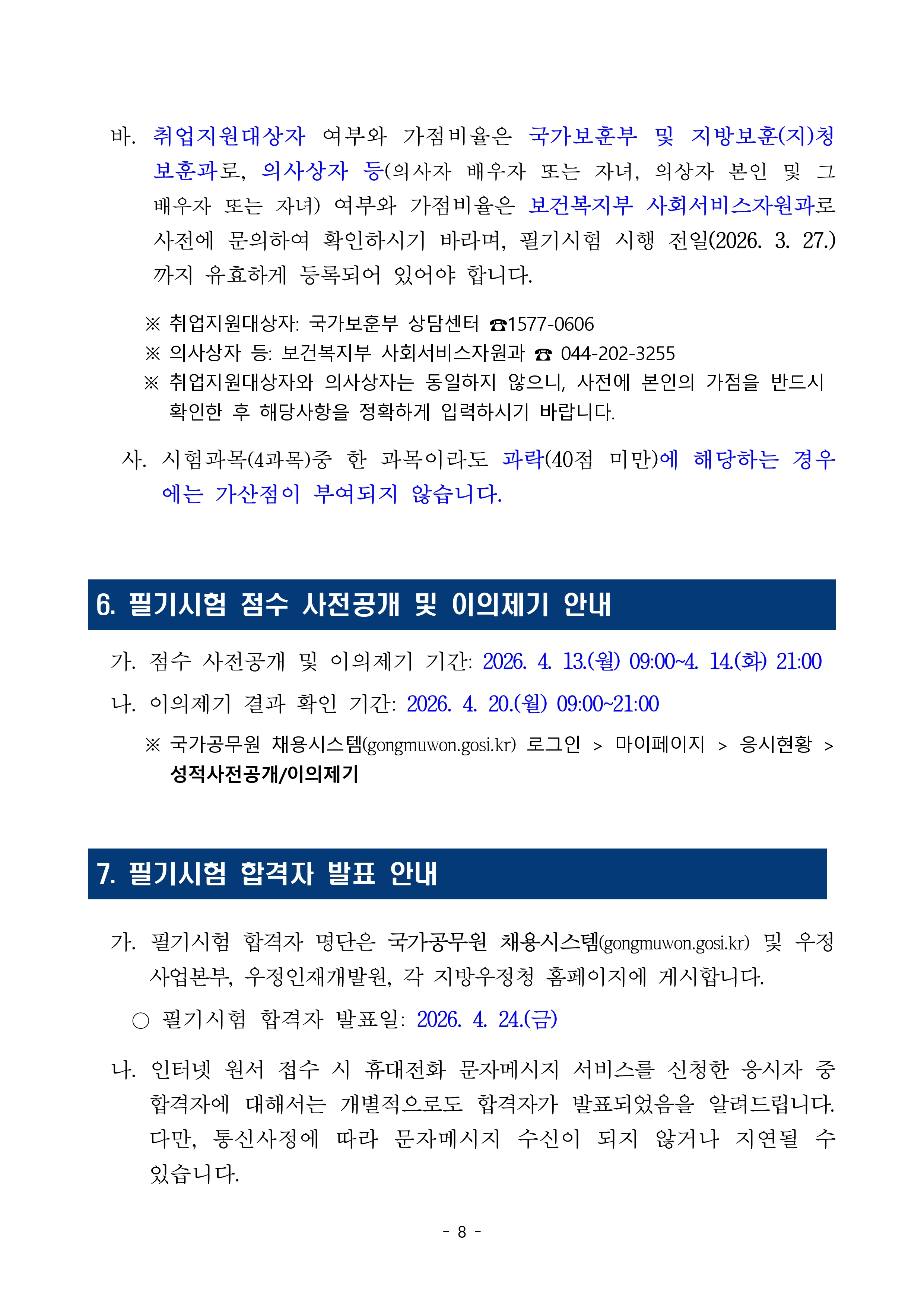 필기시험 점수 사전공개 및 합격자 발표 안내